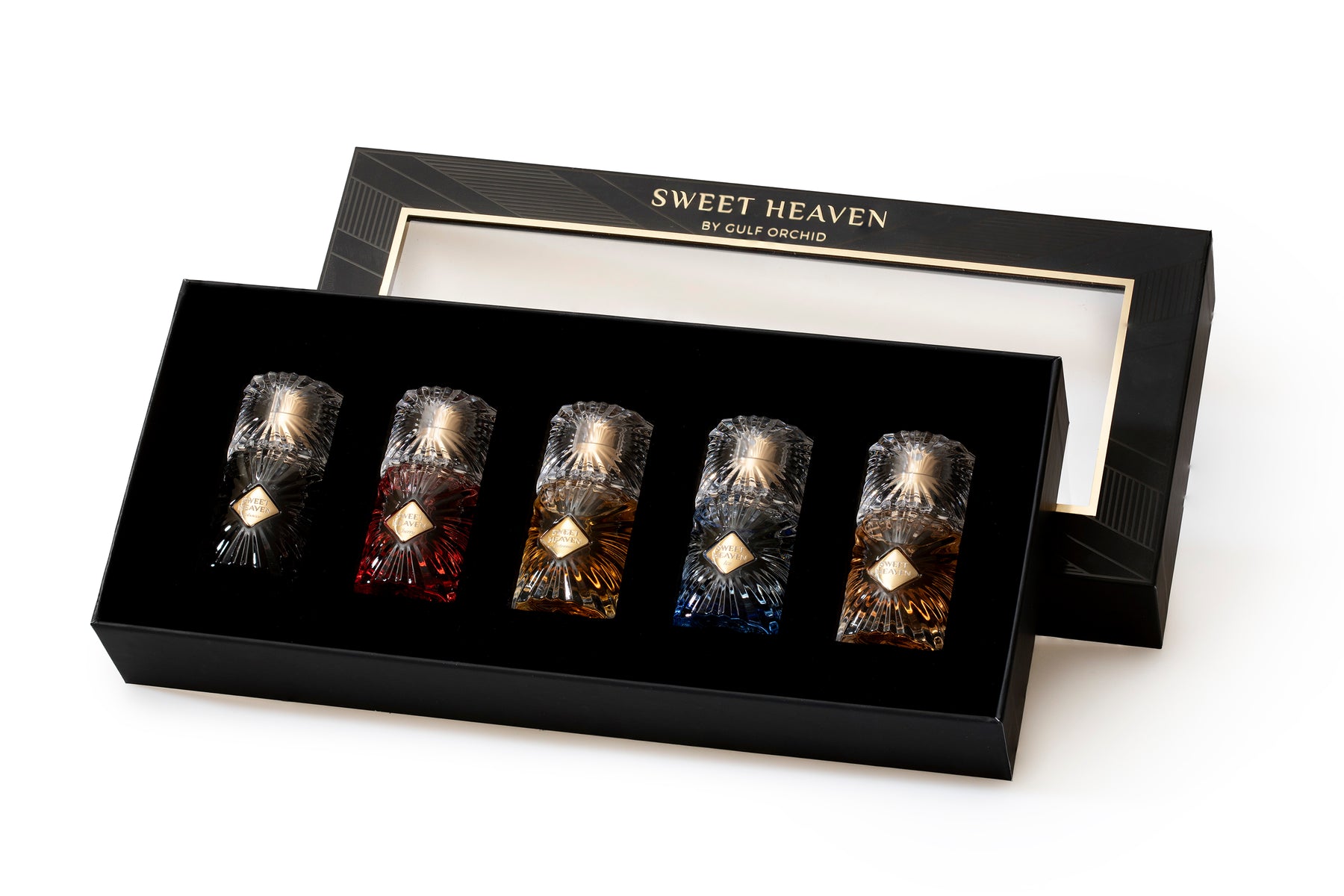 Komplet parfumov „Sweet Heaven“ podjetja „Gulf Orchid“ (ZAE), ki vsebuje 5 različnih parfumov po 20 ml (skupaj 100 ml). To so arabski parfumi izjemno visoke kakovosti.