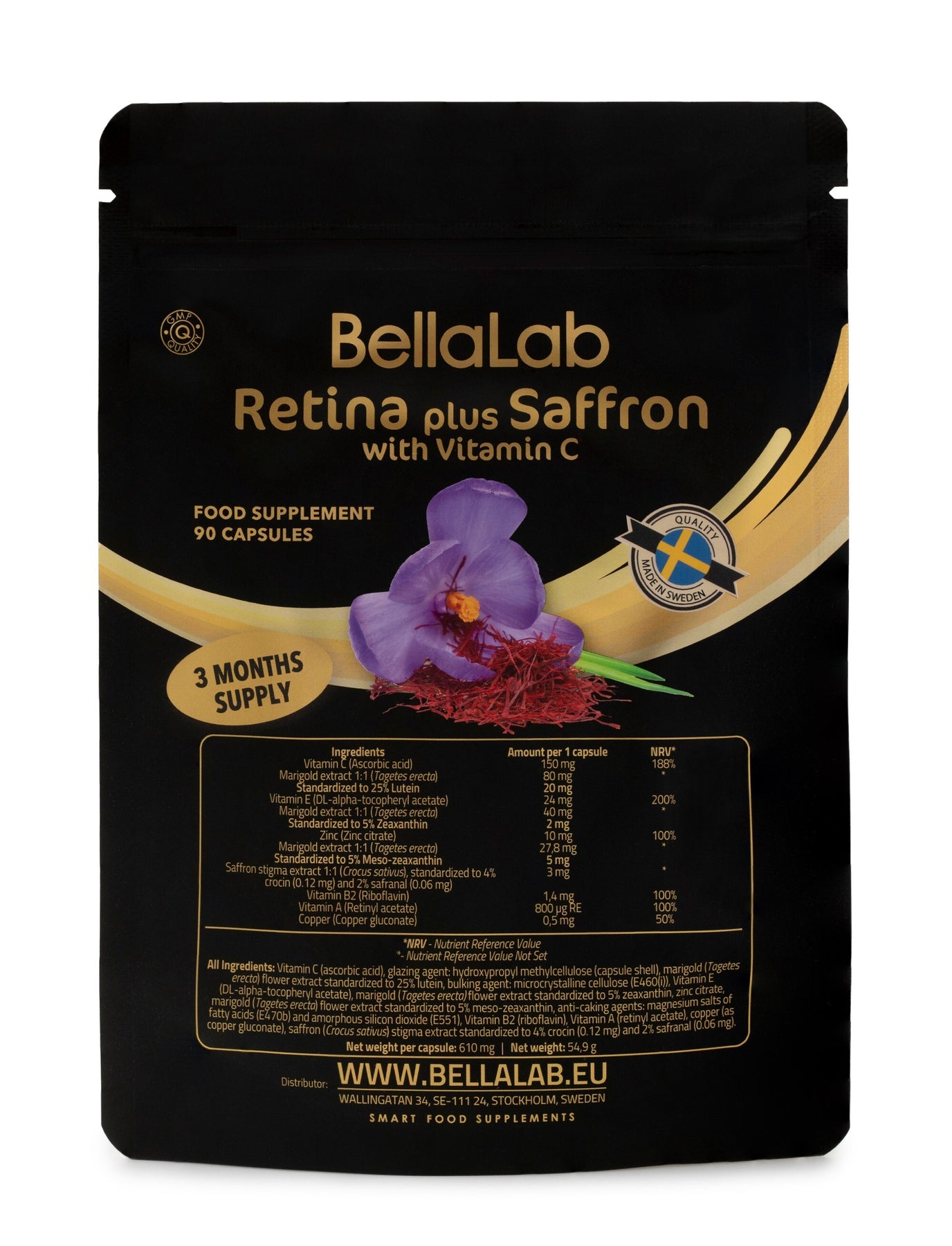 Prehransko dopolnilo za oči „Retina plus Saffron“. Gre za izjemno kakovosten skandinavski izdelek.